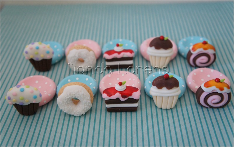 Porta Docinhos no tema Patisserie (cupcakes, tortas, donuts, rocamboles em biscuit) - Também para o tema Cupcakeria, Confeitaria, etc.